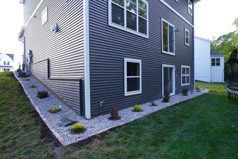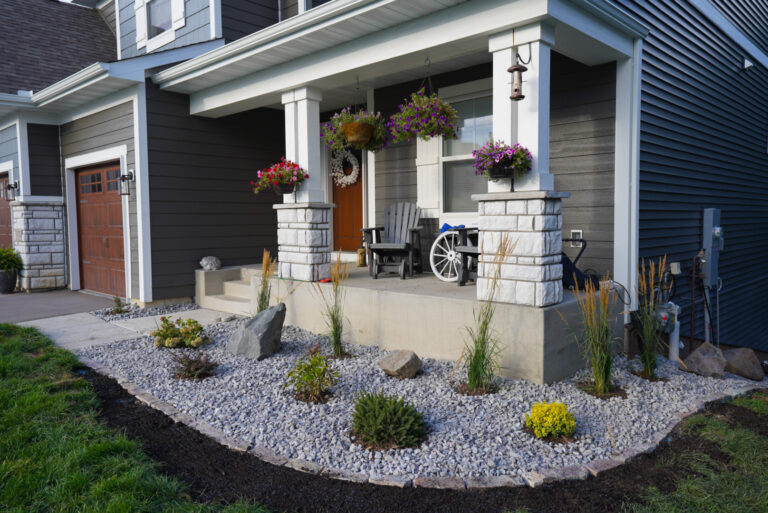 This landscape refresh transformed this outdoor living space into a serene oasis with an installation that incorporated sophisticated retaining walls and stunning natural plant layouts.